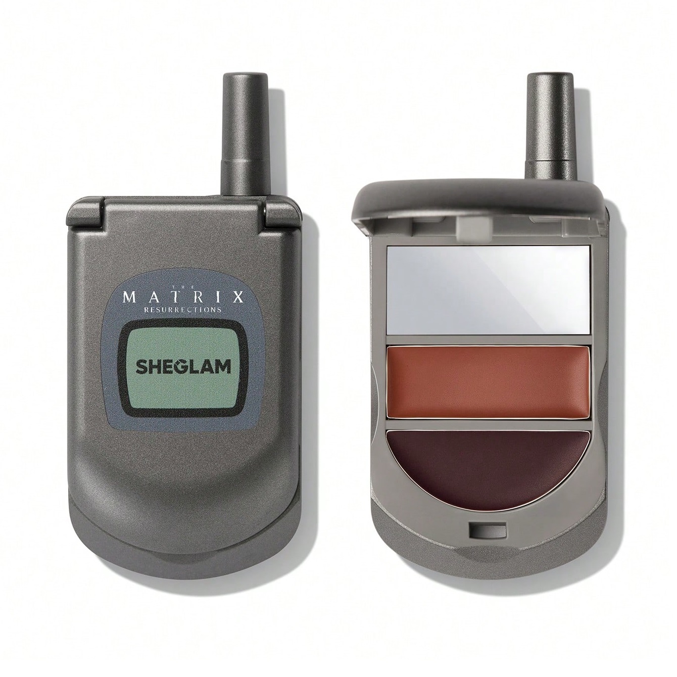 - رنگها و طراحی: شامل دو رنگ متعادل که گونهها را برجسته و حجم دار میکنند. طراحی جعبه آن شبیه به تلفنهای تاشوی قدیمی (flip-phone compact) است که به سبک Y2K و تم ماتریکس اشاره دارد – مانند دستگاههای انتقال (transporters) در فیلم.