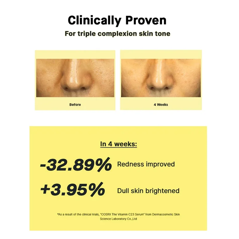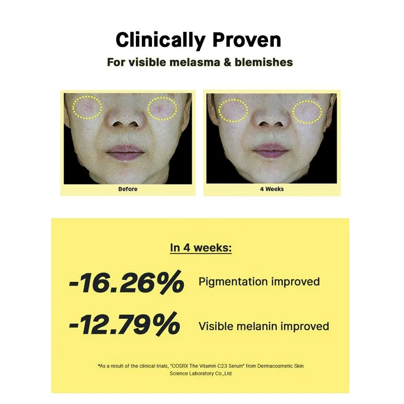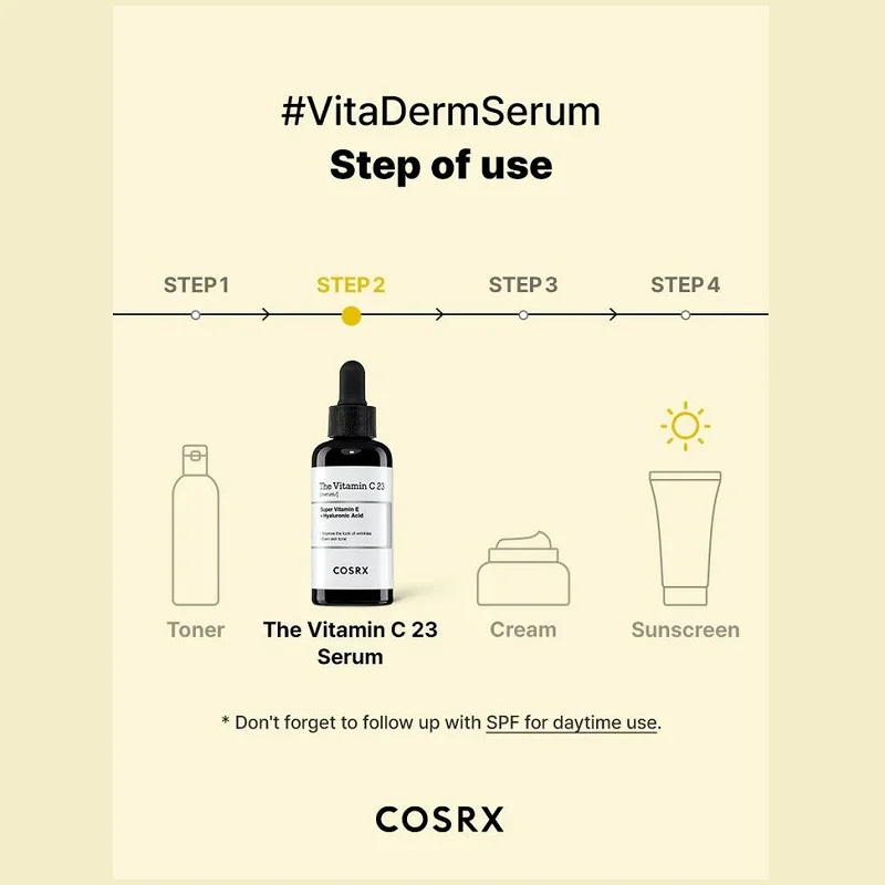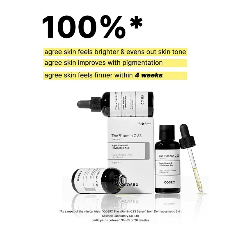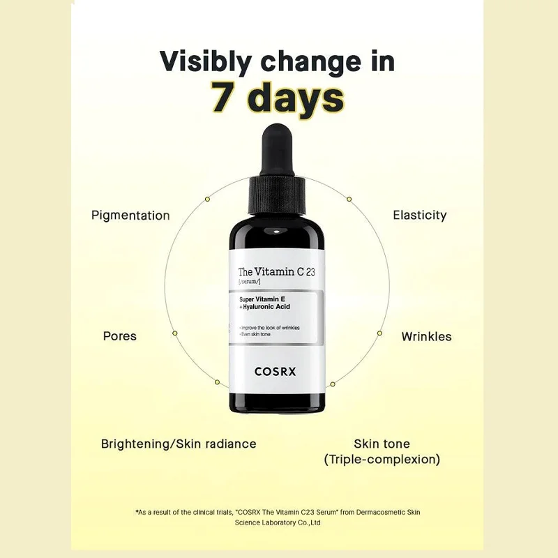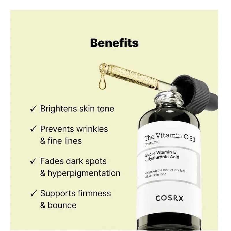 - %23 ویتامین سی خالص: آنتی اکسیدان، بهبود لکها و روشنکننده، کاهش چین و چروک و افزایش خاصیت ارتجاعی
