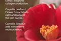 - کاملیا تخمیری (Fermented Camellia+): شامل روغن دانه، عصاره دانه، برگ و گل کاملیا ژاپنی؛ غنی از اسیدهای چرب، ویتامینهای A، B و E؛ برای صافکنندگی، هیدراتاسیون و تقویت پوست.