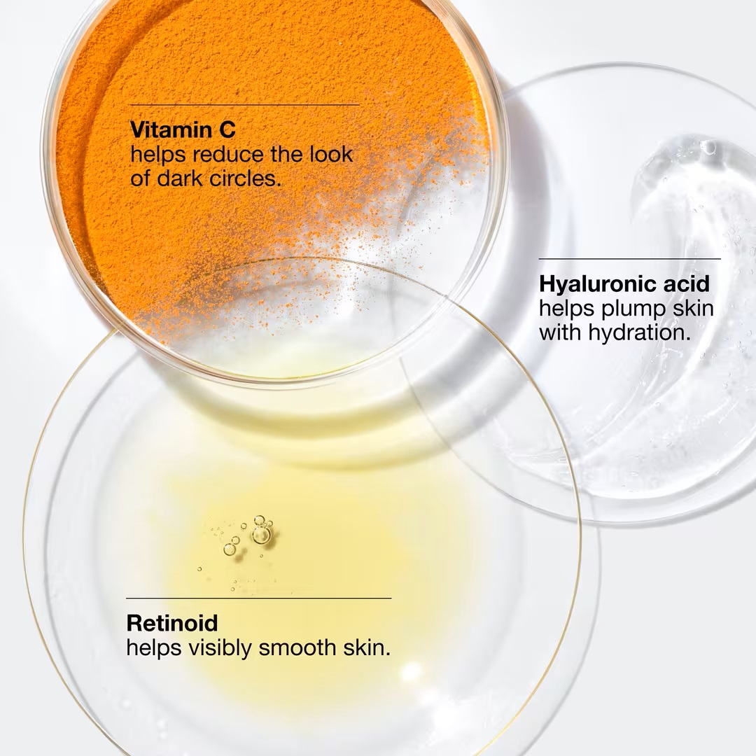 - رتینوئید (Hydroxypinacolone Retinoate): تسریع تجدید سلولی طبیعی پوست برای صافتر شدن ناحیه چشم.
