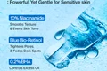 - Blue Bio-Retinol (۱% RetinART™ + ۲% STARENOL™): ترکیبی از رتینول بیولوژیکی ملایم و رتینول خالص کپسولهشده که اثرات ضدپیری رتینول را بدون تحریک (مانند قرمزی یا پوستهریزی) ارائه میدهد. این فناوری "آبی" (برخلاف رتینول زرد سنتی) برای پوستهای حساس ایمنتر است و به کاهش لکهای تیره، خطوط ریز و منافذ کمک میکند.