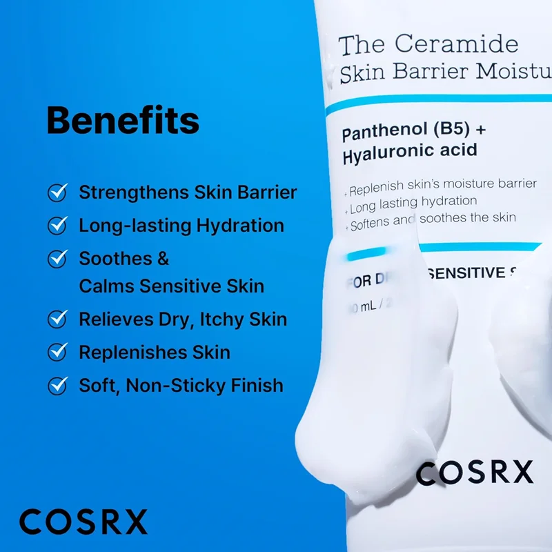 مرطوب کننده و تسکین دهنده قوی پوست همراه با سرامید کوزارکس یک مرطوبکننده غلیظشده بر پایه سرامید است که در مارس ۲۰۲۵ توسط برند کرهای Cosrx معرفی و برنده جایزه معتبر "2025 SHAPE AWARD WINER" شده است. این محصول با تمرکز بر تقویت سد دفاعی پوست (skin barrier)، رطوبترسانی طولانیمدت و تسکین التهابات طراحی شده است. این مرطوبکننده سبک و بدون احساس سنگینی، برای روتینهای روزانه ایدهآل است و با مواد فعال مانند ویتامین C، رتینول و نیاسینامید سازگار است.