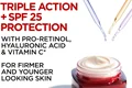 - کاهش چینوچروک (Pro-Retinol):- پرو-رتینول (مشتقی از ویتامین A) به بهبود بافت پوست کمک میکند و با افزایش چرخه بازسازی سلولهای پوست، ظاهر چینوچروکها و خطوط ریز را کاهش میدهد. این ماده به طور خاص برای صاف کردن پوست و بهبود ناهمواریهای آن طراحی شده است.