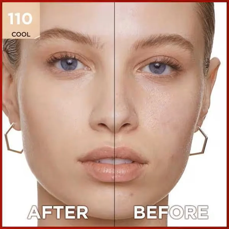 • پوشش و دوام: پوشش کامل (full coverage) با بافت مات و طبیعی (second-skin finish) که بدون ایجاد حس ماسک‌مانند، ناهمواری‌ها، قرمزی، لک‌ها و منافذ باز را می‌پوشاند. دوام 32 ساعته در برابر تعریق، رطوبت، انتقال (transfer-proof) و براق شدن (shine-proof) دارد.