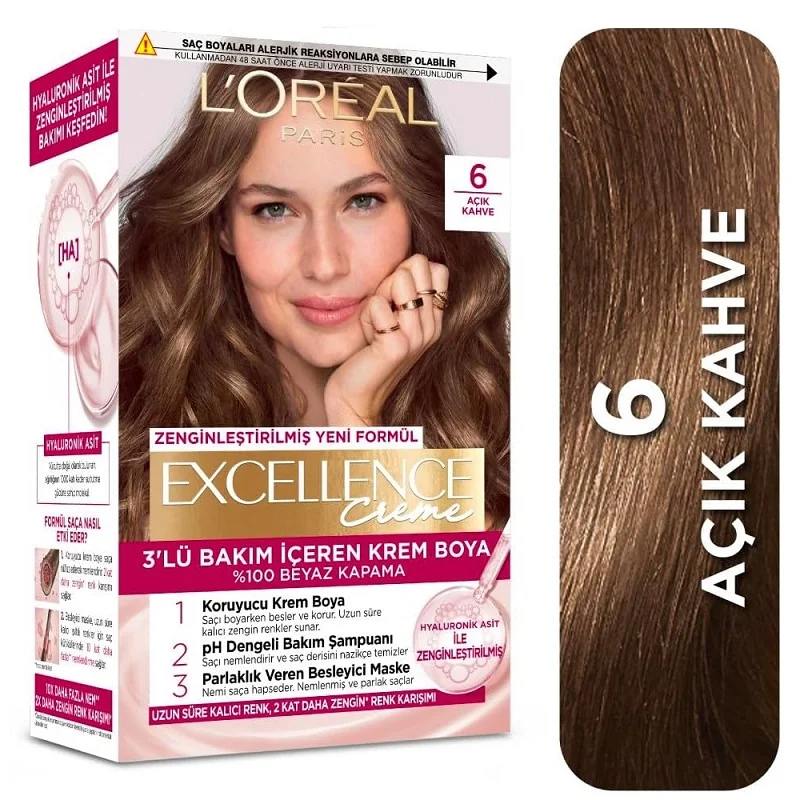 رنگ مو اکسلانس لورال یکی از بهترین و پرفروش ترین رنگ موهای دنیا بوده و به دلیل داشتن تکنولوژی محافظت سه گانه و پرو کراتین های پیشرفته از ساقه های موی شما محافظت نموده، تغذیه کرده و زیبایی موهایتان را چندین برابر خواهد کرد. رنگ موی اکسلانس لورال 5 برابر بیشتر موهایتان را نرم خواهد کرد و بعد از استفاده موهایی براق و خوش رنگ برای شما به ارمغان خواهد آورد. تمامی رنگ های این محصول موهای سفید را پوشش خواهند داد و نگرانی بابت سفید ماندن موهایتان نخواهید داشت. وجود شامپو و کرم مو مخصوص در کیت رنگ مو Excellence باعث می شود که موها به مدت ۸ هفته محافظت شده و کاملا نرم و خوش حالت باقی بمانند. در این کیت رنگ مو از مقدار بسیار کمی آمونیاک استفاده شده که باعث آسیب رساندن به موهای شما نشده و سلامت موهای شما را حفظ می کند.